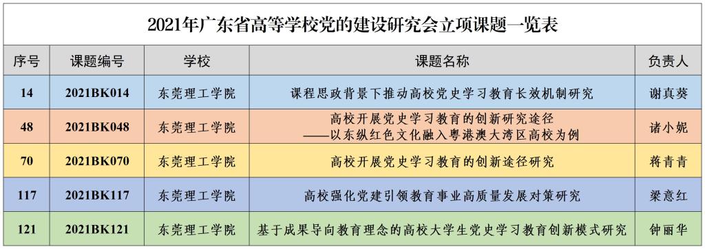 近日,广东省高校党建研究会公布了2021年高校党建课题立项名单,我校共有5项课题获准立项。