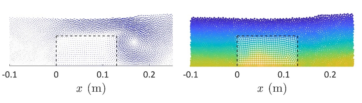 邵颂东教授的研究领域是用无网格粒子法模拟自然界复杂的多物理过程,粒子的自由移动特性给数值计算领域提供了新的探索方向。2003年在Advances in Water Resources期刊发表的《Incompressible SPH method for simulating Newtonian and non-Newtonian flows with a free surface》文章(Google学术引用1154次),开发了光滑质点水动力学法Smoothed Particle Hydrodynamics的水动力学模型,在国际上首次提出不可压缩ISPH模式。该方法将计算学领域的创新方法与经典水动力学理论密切结合,突破了传统SPH采用显示方程求解压强的常规模式,大大提高了计算效率与水流压强的稳定性要求,使来源于天体运动的SPH方法广泛地被推广于水动力学领域的应用。此项研究成果被国际学术界广泛承认,被世界同行认可为该领域的里程碑之一,计算模型可解决溃坝水流、孔隙流、多相流等精准模拟(见下图)。邵颂东教授当前正带领45612藏宝阁资料工程软件重点实验室的团队成员,在学校的大力支持下,拟打造新一代粒子法工程软件及云服务生态系统,实现计算水力学领域的核心软件突破,将来为海岸海洋(污染物扩散)、生物医学(心脏血流流动)、工艺制造(颗粒分选)等提供精细化模拟的算法平台。