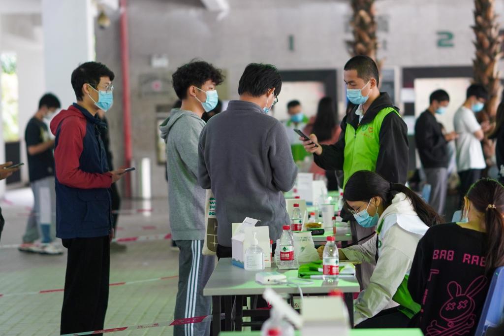 本次核酸检测采样工作中,松山湖校区由松山湖中心医院、康华医院共派出28位医护人员到场,莞城校区由东莞市莞城医院共派出12位医护人员到场,师生员工在各二级单位组织下,提前备好“葵花码”,佩戴好口罩,按照要求依序排队等候,现场井然有序。