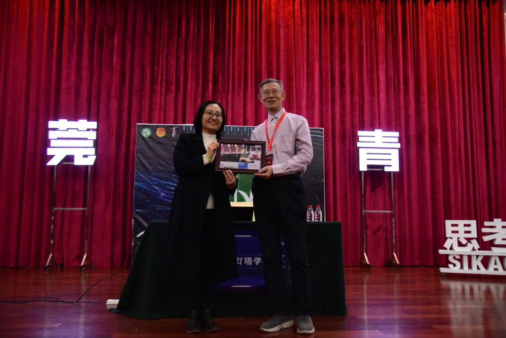 讲座后,校团委书记劳丹为张大鹏院士送上纪念相框。