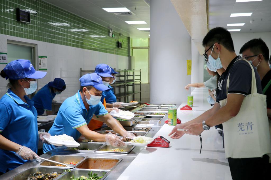 开学首日,学校紧抓防疫工作不放松。教室里,师生齐齐做好防疫措施,戴好口罩投入课堂;饭堂里,学生有序排队购餐与就餐,保持安全距离;运动场上,学生自觉遵循防疫措施,减少人员聚集。
