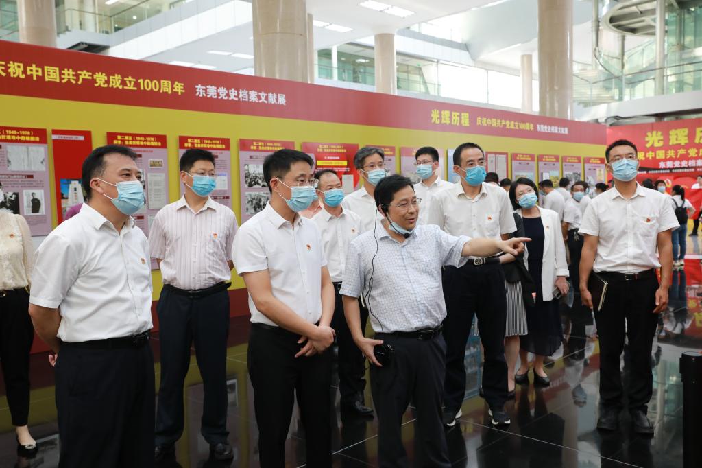 中心组一行首先前往市图书馆参观由中共东莞市委办公室、中共东莞市委组织部、中共东莞市委宣传部、中共东莞市委党史研究室、东莞市档案馆联合主办的“光辉历程——庆祝中国共产党成立100周年东莞党史档案文献展览”,深入了解中国共产党团结带领东莞人民“不忘初心、牢记使命” 的不懈奋斗史、不怕牺牲史、为民造福史、自身建设史。参观过程中,在东莞市委宣讲团成员、市委党史研究室主任李炳球的带领下,大家循着历史脉络,认真听取图片背后的历史与革命故事,不时相互交流,回望党在东莞发展的光辉革命历程,感受东莞这座城市日新月异的发展变化。