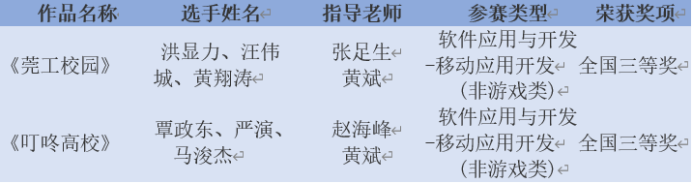 7月25日,2021年中国大学生计算机设计大赛全国决赛落下帷幕。经过紧张激烈的竞争,决赛结果火热出炉。本次全国总决赛,网安学院2件参赛作品《叮咚高校》和《莞工校园》均喜获全国三等奖!