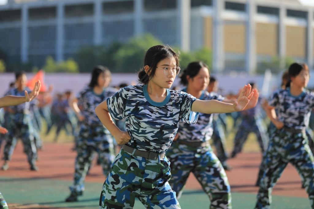 2021级教育学院(师范学院)的徐庆基同样被选拔进了军体拳方阵,他觉得练好军体拳的关键就是要把握细节,动作迅速用力。“军体拳细节比较多,每一步都需要你去思考。”平时,徐庆基经常会将一套动作反复练习,直到满意为止。“下雨的时候,教官让我们走在前面,他在后面冒着雨帮我们收东西。”教官们虽然在训练时比较严格,但他们也会在休息时唱歌跳舞,在下雨时默默关心着同学们。这一切都被学生们看在眼里,在徐庆基眼中教官是最可爱的人。汗水湿透了军训服,但徐庆基脸上却始终洋溢着灿烂的笑容。“军训虽然辛苦,但是很值得。”对徐庆基而言,军训不仅磨练意志,更让他学会自律,是一个很有意义的过程。