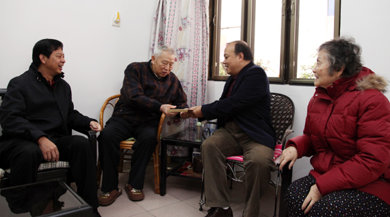 1月12日,校党委副书记吕琦元,校党委委员、组织部部长李培经率相关负责同志代表学校到莞城校区慰问老党员代表,转达了全校师生对他们的新春祝福,并向他们送上了礼品和慰问金。