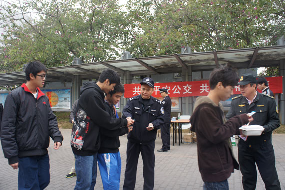 寒假临近,师生员工将大量出行,为加强寒假期间安全出行的宣传教育,相关部门针对春运、高校师生出行以及松山湖园区交通特点,制作了宣传海报、画册和卡片等宣传资料。工作人员现场向师生员工派发了《安全乘车小常识》、《关于抵制“黑车”的倡议书》,《致园区高校学生的一封信》、《东莞市具有合法包车资质的客运企业信息》等相关资料,并不断提醒师生员工注意出行安全。
