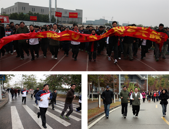 据工会统计,全校共有500多名教职工参与了长跑活动。虽然遭遇了冷空气和细雨双重袭击,但教职工的参与热情并未因此而衰退;他们三五成群,或一路小跑、或大步流星、或雨中闲步,坚持全程参与环校长跑。