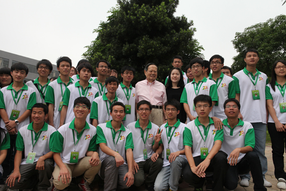 4月27日上午,春风和煦,阳光明媚,诺贝尔物理学奖获得者、我校名誉校长杨振宁,著名学者、书画家、诗人范曾大师在学校领导周致纳、杨晓西、黄碧莲、吕琦元、戴炳源等的陪同下,来到我校院士林,为莞工校园再添新绿。
