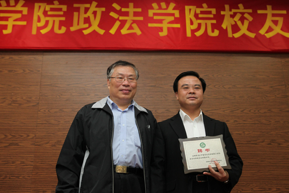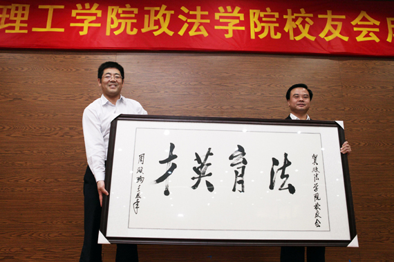 政法学院院长徐波与政法学院校友会会长黄少峰一同为政法学院校友会成立揭幕。徐波指出,政法学院多年来造就了许多精英,如今政法学院校友会也将成为校友支持母校建设的载体。黄少峰在致辞中表示,校友会是如今校友们传递友谊的精神家园,相信在母校的指导下,政法学院校友会将成为校友的温馨家园。黄少峰还代表校友会向母校赠送纪念品。