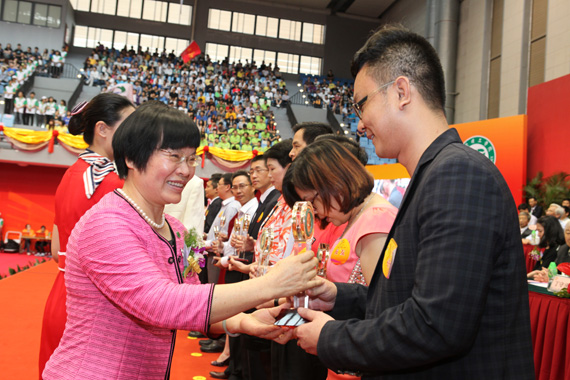 4月28日,在建校20周年庆祝大会,学校表彰了10名“莞工突出贡献奖”获得者,感谢他们为我校建设和发展作出的贡献;20名杰出校友,肯定他们为推动东莞经济社会发展作出的努力。学校领导杨晓西、黄碧莲分别为获奖者颁奖。