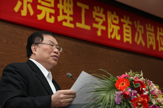 昨日下午,我校首次岗位聘任正高人员聘任仪式举行。 聘任仪式上,校党委书记周致纳、校长杨晓西向受聘的正高人员一一颁发聘书。 校领导吕琦元、邹晓平、戴炳源,校党委委员李培经、邢大立、杨敏林和机关各部处、院系主要负责人参加了聘任仪式。76名教师受聘正高岗位 据人事处介绍,我校首次岗位设置和人员聘用工作进入尾声。 在本轮岗位聘任中,按照公平公正公开的原则,经过个人申报和师资建设指导委员会评议、票决、公示等竞聘程序,并经校岗位设置和人员聘用工作领导小组批准,这次共有76名教师受聘正高岗位。周致纳:争做德技双馨的教师 在聘任仪式上,周致纳作了讲话。他充分肯定了岗位聘任工作,并向受聘为正高岗位的教师表示祝贺。 在讲话中,周致纳对各位正高人员长期以来支持帮助学校的发展表示感谢。他说,莞工所有的进步和成果,与各位正高人员的共同努力是分不开的。 同时,周致纳对受聘的各位正高人员提了要求。他要求,各位受聘的正高人员,要力争做到德技双馨,做一名高德高技的教师。