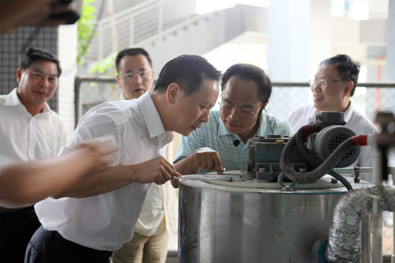 座谈后,徐建华考察了广东省分布式能源系统重点实验室(筹)。在实验室里,徐建华兴致勃勃地听取研究人员关于实验室承担国家973、863项目的执行情况汇报,参观了实验装置,细致地了解实验原理和产学研合作情况。
