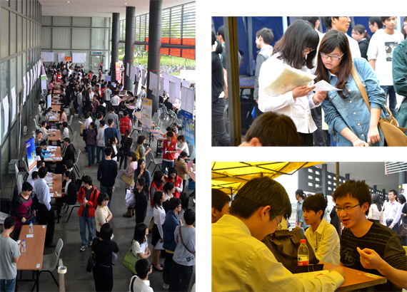3月23日,2012年东莞市外商投资企业协会校园招聘会在我校图书馆前举行。本次招聘会吸引了中国移动通信集团广东有限公司东莞分公司、中国联通东莞分公司、东莞中域电讯连锁集团股份有很公司、广州大旺食品有限公司深圳分公司、百胜餐饮集团等196家企业参会,较2011年增加了20多家企业,共提供3500多个岗位。