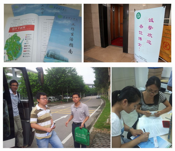 “海纳百川,真诚服务”是我校人才引进工作的一贯宗旨。为了让这批新进的博士更快地熟悉环境,融入莞工,相关部门做了大量细致周到的工作。例如,人事处在校门口、行政楼电梯口等地方放置了醒目的指示牌;保卫处在校门口安排了电瓶车专程接送;志愿者专门提供带路及餐饮指引服务等等。同时,人事处还为博士们精心编写了内容详尽的校园工作生活指南小册子,使博士们初来乍到就感受到了莞工人的热情与周到。
