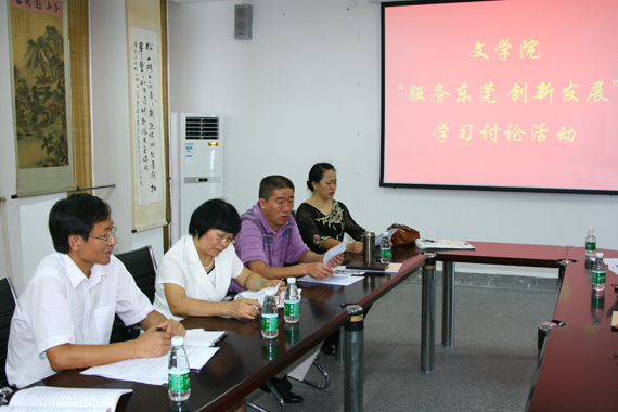与会教职工对东莞市委副书记、市长袁宝成的报告内容,校党委书记成洪波的动员讲话精神展开热烈讨论,一致认为“服务东莞、创新发展”主题学习讨论活动与院系学科发展,专业建设,人才培养关系密切;要走出去了解市场现状,对接地方社会的文化需求,结合东莞文化名城建设,切实发挥文学院在学校文化高地的作用。