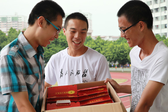 为了让学生度过一个温馨的中秋佳节,我校提前为全校学生订制了12700余盒月饼。9月26日——27日,由我校教育发展基金会赠送的12700余盒月饼分别在松山湖校区和莞城校区发放,学子们脸上都洋溢着欢喜的笑容,所有同学人手一盒。同学们高高兴兴地领到了月饼,吃在嘴里,甜在心里。