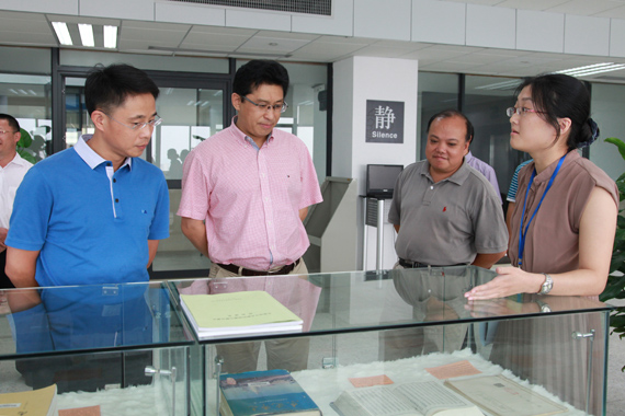 任洪杰主任(左2)参观图书信息中心