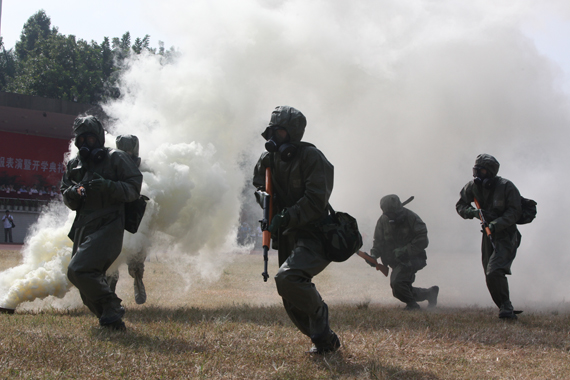新生进行战术防化表演