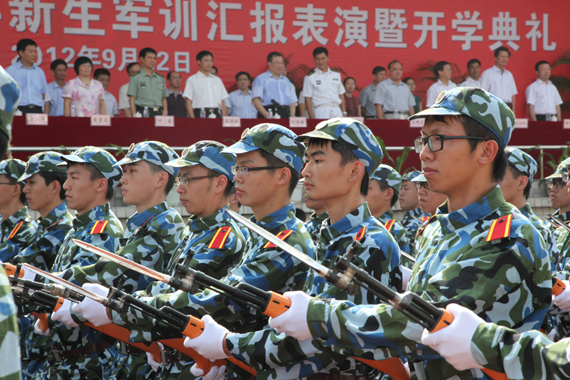 9月22日,我校举行2012级新生军训汇报表演暨开学典礼。今年共有3599名新生参加军训,是我校新生参训人数最多的一年。学校党委书记成洪波在军训团团长毛广裕的陪同下检阅了受训新生。
