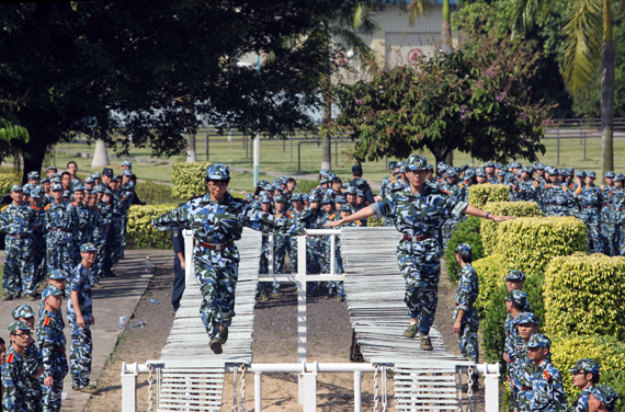 据了解,拓展活动邀请了沙角部队的官兵进行技术指导。拓展活动包括必选项目“合力冲击”、“勇往直前”、“相互依存”共3项,军训连队中每个排须在指定时间段参加其中一个项目;自选项目“软桥”、“螺旋梯”、“高低横木”、“轮胎攀台”、“摇摆平台”、“晃动横梯”、“阻绝墙”、“模拟沙滩”、“凌空跨越”和“信任背摔”共10项,连队以排为单位自由选择项目参加。