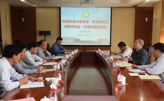 11月14日,东莞市委常委、常务副市长梁国英率员来校指导,现场考察了学校发展,听取了情况汇报,并就有关问题作了明确指示。