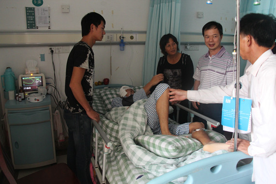 10月24日,校党委委员、副校长李忠红与学生处处长路晓军等一行,前往东莞市人民医院普济分院慰问体育系患病学生程梁载。