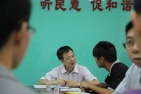 这是我校党代表工作室正式启用的第一天。学校党委书记成洪波、副书记吕琦元来到了接访现场,了解党代表工作室工作开展情况。从此,学校的师生又多了一个反映民意、倾诉民声的好去处。