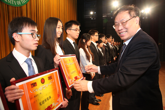 2011—2012学年度,我校5个团队获“杨振宁奖学金”、19名国家奖学金获得者被评为“优秀大学生标兵”, 共有2992名学生获得各类奖学金。此外,当晚还表彰先进班集体25个,优秀大学生457人,优秀学生干部475人。
