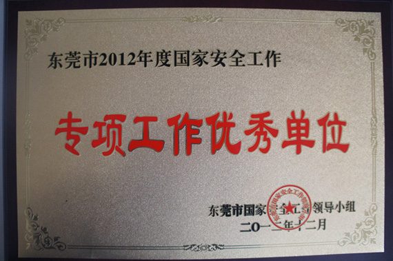 根据《关于表彰2012年度东莞市国家安全工作先进单位、优秀单位及先进个人的决定》,我校被东莞市国家安全工作领导小组评为“东莞市2012年度国家安全工作专项工作优秀单位”,学院办公室(党委办公室)主任刘健被评为“2012年度东莞市国家安全工作先进个人”。