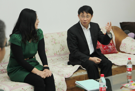 随后,成洪波看望了张腾云博士的遗孀胡彬老师。张腾云老师2007年博士毕业后即到我校工作,不幸于2010年因病倒在工作岗位上。