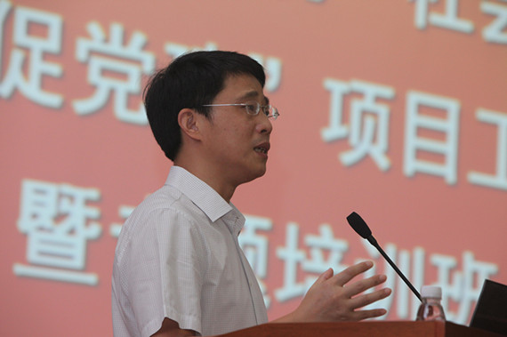 成洪波对项目进行了介绍。他指出,把人才培养这个核心任务更好地和学校的发展结合在一起,其中一个途经就是通过“社会工作进校园促党建”这样一个项目作为抓手,以学生工作作为切入点来全面提高学生在健全人格、公民意识、社会责任感等方面的培养,能够真正使我校所培养的人才为社会所欢迎,为学生的成长能够提供一个有效的帮助。而且,大学教育的环境正在发生深刻的变化,人才培养中一方面要传承和发扬既有的工作理念、经验和优势,另一方面要以一个改革开放的精神,以一个更加开放的心态去主动借鉴和接纳新的理念、新的方法,而社会工作的理念和方法,和传统学生工作最具有亲和力,如果能够把两者的优势结合起来,并在我校人才培养当中得到一个很好的探索和实践,就能够去回应大学环境变化对我校的各种挑战。同时,“书记项目”也是基于学生的现实需求。