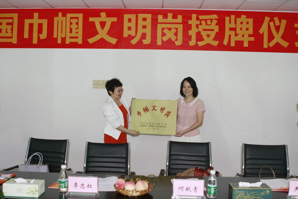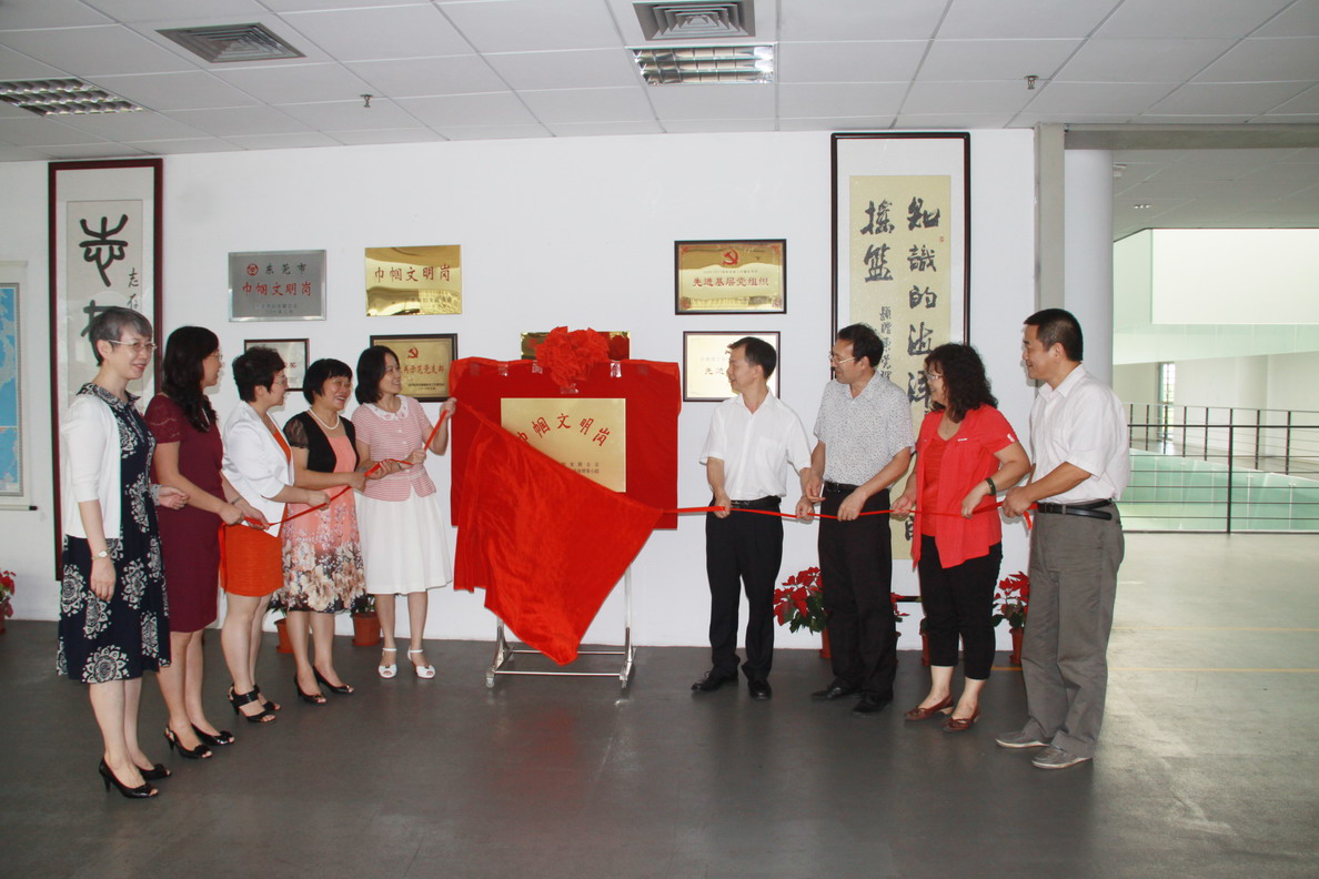 随后,黄慧红还与我校副校长李忠红,老领导黄碧莲,校工会、校妇委、图书馆等相关负责人共同为全国“巾帼文明岗”举行揭牌仪式。