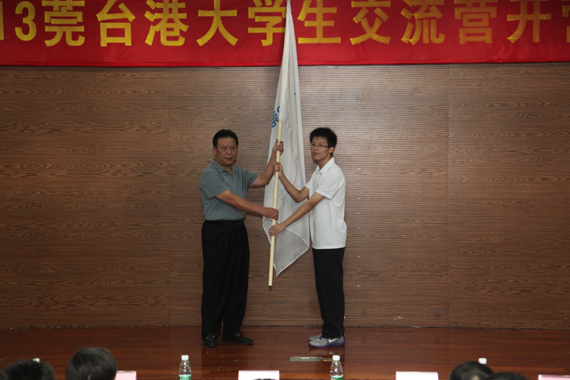 开营仪式上,台北市东莞同乡会常务理事、台湾文化大学教授殷富和我校杜世恒同学分别代表参营教师和学生发言,表达了增进交流,加深友谊的心愿。钟淦泉还向学生代表授交流营营旗,标志着交流营正式开营。