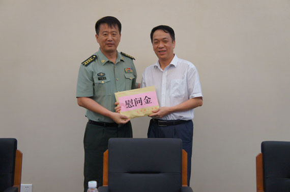 李琳校长向东莞军分区李庆文司令员送上慰问金