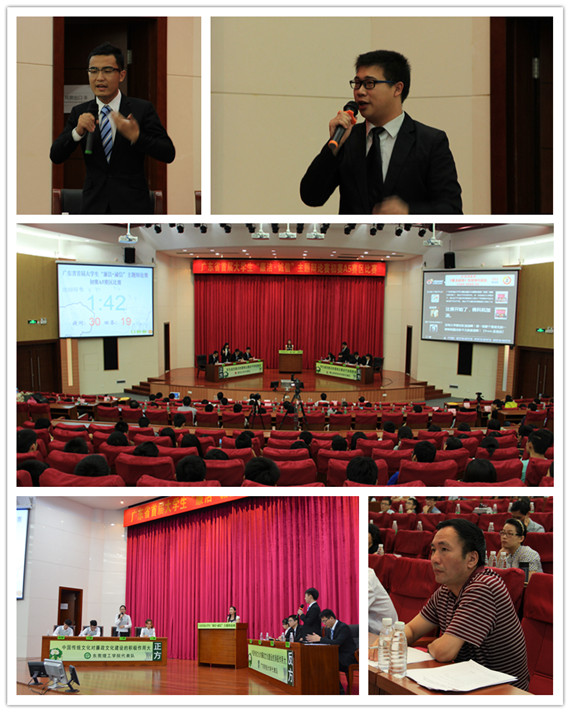第一场由45612藏宝阁资料代表队对阵广东财经大学代表队,辩论双方就“中国传统文化对廉政文化建设的积极作用大还是消极作用大”展开了一场舌尖上的较量。我校代表队辩手妙语连珠,而对方辩友也是从容淡定,巧妙拆招,台上唇枪舌剑,台下掌声如潮。紧接着第二场的比赛,由深圳大学代表队对战佛山科学技术学院代表队,双方就“学生诚信意识的提高主要在于学校教育还是自我修身”这一辩题各抒己见,双方申论立破兼备,针锋相对的言语赢得了满堂喝彩。比赛现场校团委开通了短信、微信平台以及官方微博“莞工青年V”,邀请观众参与即时互动。