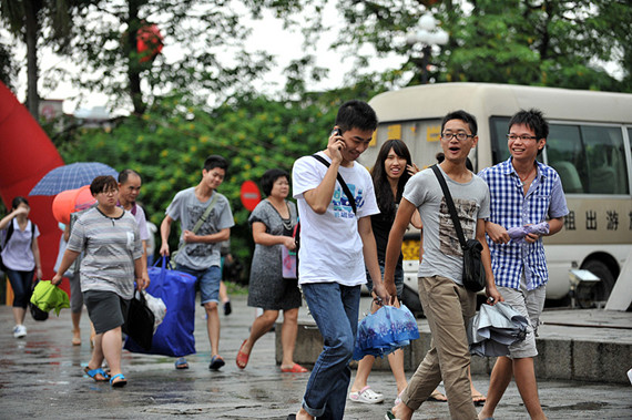 志愿者们风雨无阻地为新生送上最贴心的服务