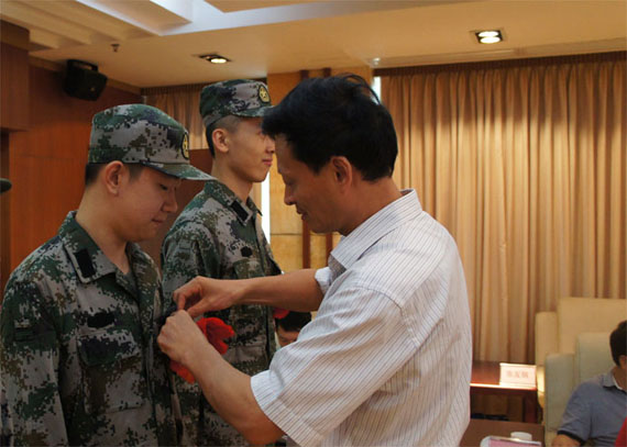 9月5日,我校召开新兵入伍欢送会。副校长戴炳源、相关职能部门负责人、入伍学生及家属参加了欢送会。 座谈会上,学生及家属纷纷发言。戴炳源向入伍同学表示祝贺,并希望同学们到部队后要刻苦训练,为祖国和部队做出贡献,同时要加强与学校的联系。 据悉,今年我校共有63人在网上报名成功,最终共26人通过体检政审光荣入伍。其中我校出兵3人,其余23人分别在入学前户籍所在地入伍。我校入伍人员分别是计算机学院黄润标、城市学院蔡俊龙和程思远,他们于今天赴部队服役。