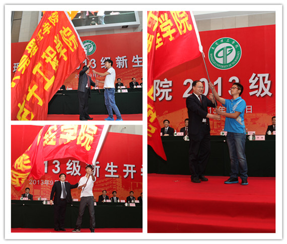 典礼正式开始前,各院系负责人分别向新生授旗