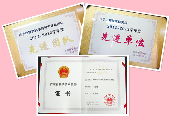 除此之外,由邓见光老师作为负责人,联合广东大榕树信息科技有限公司、东莞市立升电脑科技有限公司共同完成的科研成果“基于无线传感器网络的环境数据感知与监测系统”,通过了东莞市科技局组织的科技成果鉴定,被拟奖为2013年度东莞市科技进步一等奖,目前已完成公示阶段。此项目成果也得到了鉴定委员会的认可,专家们认为该成果在环境监测领域已经达到国内领先水平。同时,研究院科研团队开发完成的“基于无线智能传感网络的手机实时医疗监护系统V1.0”和“无线传感网络感知数据服务系统V1.0”也分别取得国家版权局颁发的计算机软件著作权登记证书。