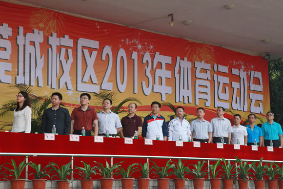 11月9日,万里晴空,莞城校区2013年运动会在该校区田径场激情举行。校党委副书记、纪委书记、副校长安少华,校党委委员、校长助理、莞城校区管委会主任邢大立,深圳晨光乳业有限公司销售总监杜和平等领导和嘉宾出席了运动会的开、闭幕式。