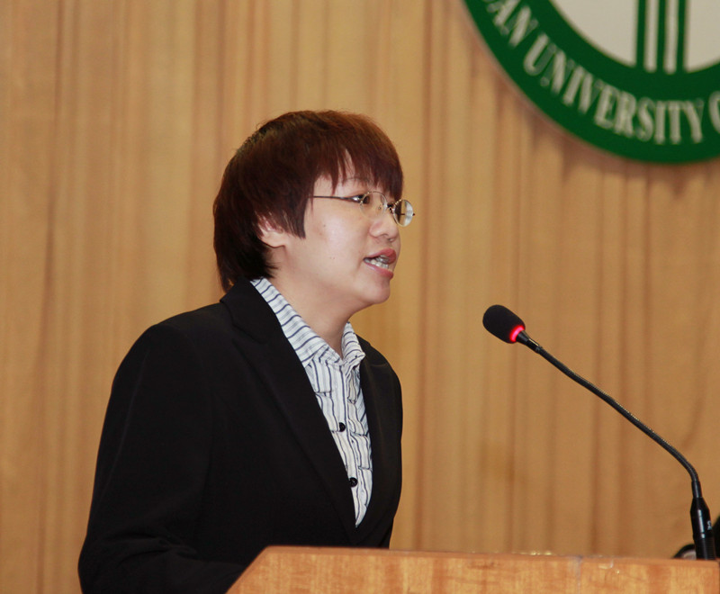 在我校2013年新生代产业工人“圆梦计划”开学典礼上,曾香桂作为新生代表发言