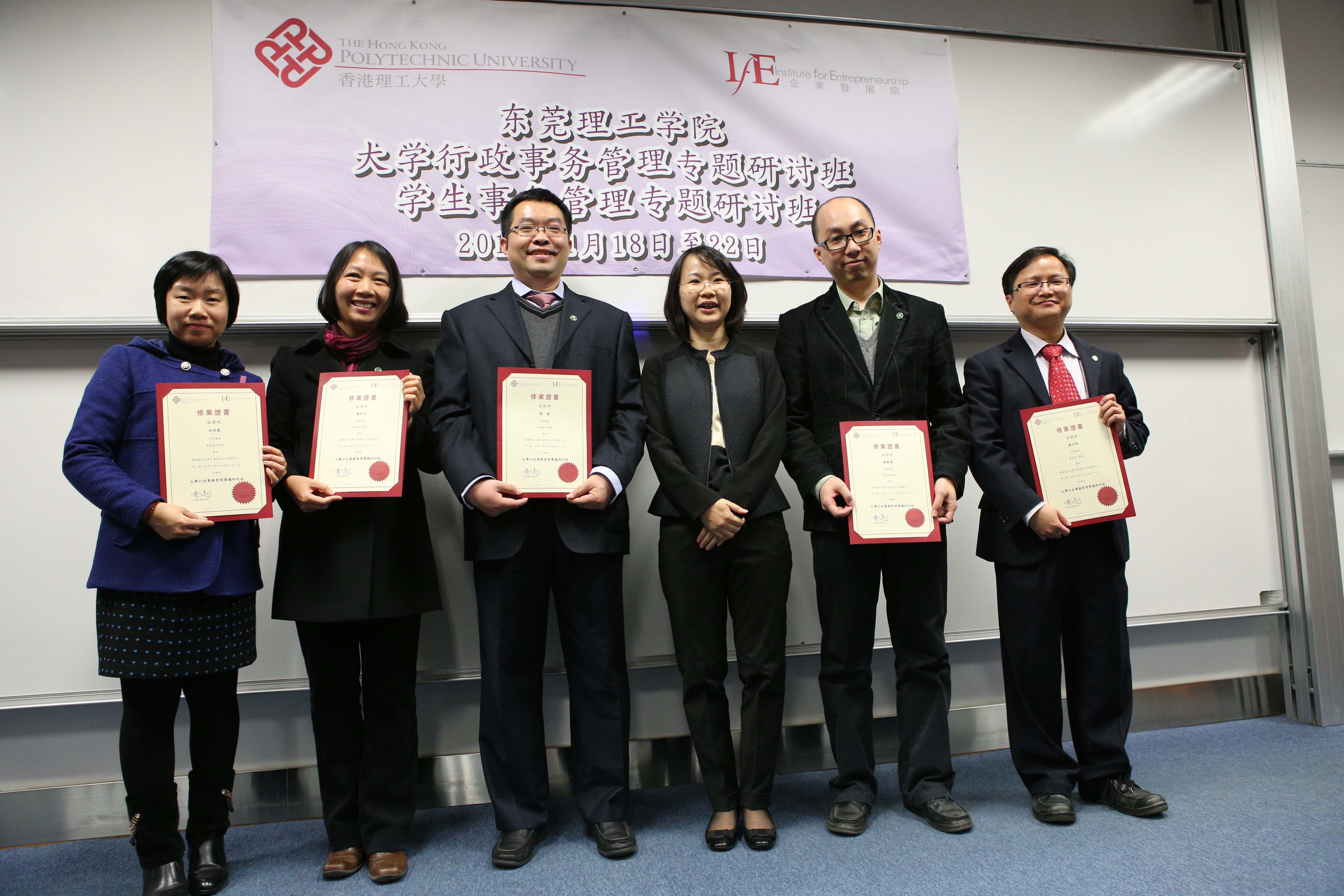 在1月18日—1月22日这5天中,两个班的学员在首日一同参加了“高校管理模式与运作”的专题讲座,在随后的四天中,大学行政事务管理专题研讨班的学员学习了“价值或加值:素质教育与人文素养的省思”、“高校策略性发展的规划与推行”、“校企合作的发展、模式及成效”、“高校的团队建设与规划”、“人力资源管理”、“正向力量——积极工作的态度”等专题课程,开展了以领导力培养为主题的团队建设活动,并实地参观考察了香港理工大学创新馆、纺织及制衣学系以及香港城市大学;学生事务管理专题研讨班的学员学习了“香港高校学生发展模式与经验”、“香港中文大学书院式学生管理”、“学生宿舍管理经验分享”、“学生社团管理模式”、“就业及心理辅导技巧”、“香港理工大学服务学习:推行与实践”、“测评工具的选择、操作与数据分析”等专题课程。