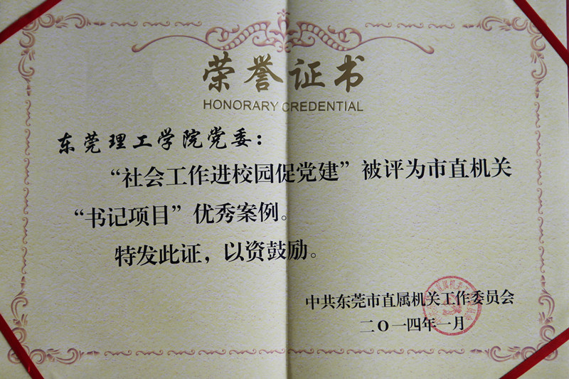 3月5日,东莞市直机关工委召开机关党建工作会议。会上公布了12个市直机关“书记项目”的优秀案例,我校“社会工作进校园促党建”项目荣列其中并受到表彰。