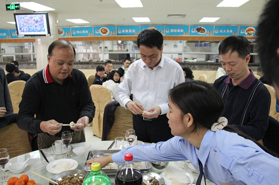 在团年饭开始之前,老师们像大家长一样带着“孩子们”一起包饺子,寓意团团圆圆,一团和气,师生们包的饺子有“元宝”状的、“东莞油角”状的,花样齐全,展现了无限的创意,也包出了浓浓的年味。随后,师生们边开怀用餐,边积极参与了“猜灯谜”、“猜新年歌曲”等游戏,现场掌声、欢笑声、祝福声相互交织,其乐融融。师生们彼此送上真挚的新年祝福,一片欢乐祥和的景象。