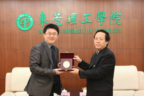 邹晓平向客人介绍了我校学科设置和办学情况,并对台莞两地应用型大学的交流协作表示欢迎。柴御清对我校的热情接待表示感谢,介绍了中州科技大学的发展情况,尤其是在服务区域经济发展、打造特色办学等方面的经验和体会,并表示希望通过此次来访与我校建立联系、探讨合作。