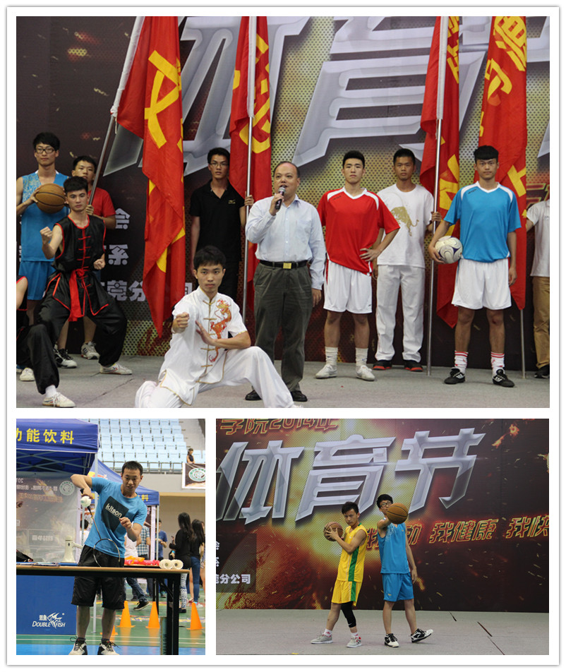 开幕式上,体育系为在场师生带来了精彩的健美操、武术表演和体育时装秀,让观众们大饱眼福。承办方指出,开展体育文化节活动,是希望让更多的同学投身体育运动中,不当“宅男宅女”,健康快乐地成长。