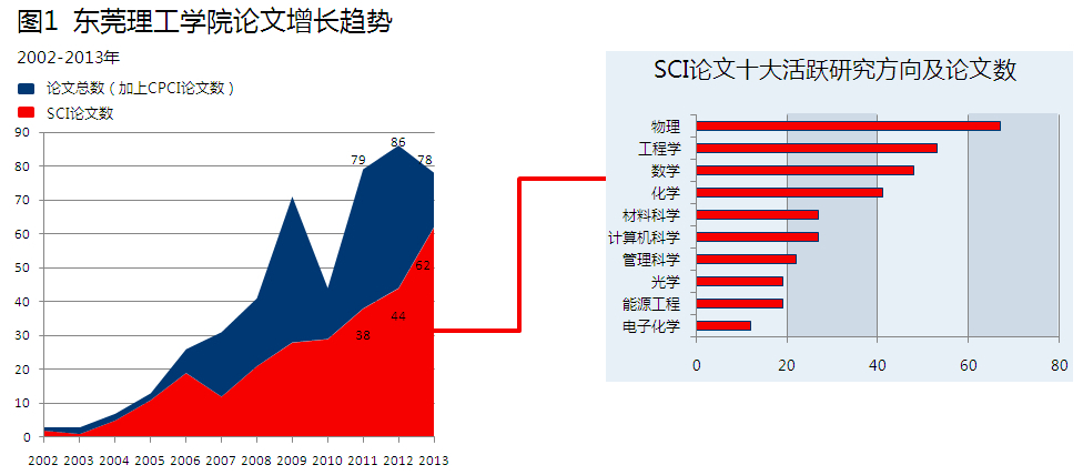 自升本以来,截至2014年2月23日,45612藏宝阁资料共有284篇科技论文被SCI数据库收录,201篇科技论文被CPCI(原ISTP科技会议录索引)数据库收录,共计485篇。从历年数据来看,我校被收录的科技论文数稳步上升,2009年增长率高达75%,2012年共有86篇,达到历史最高值,如图1所示。