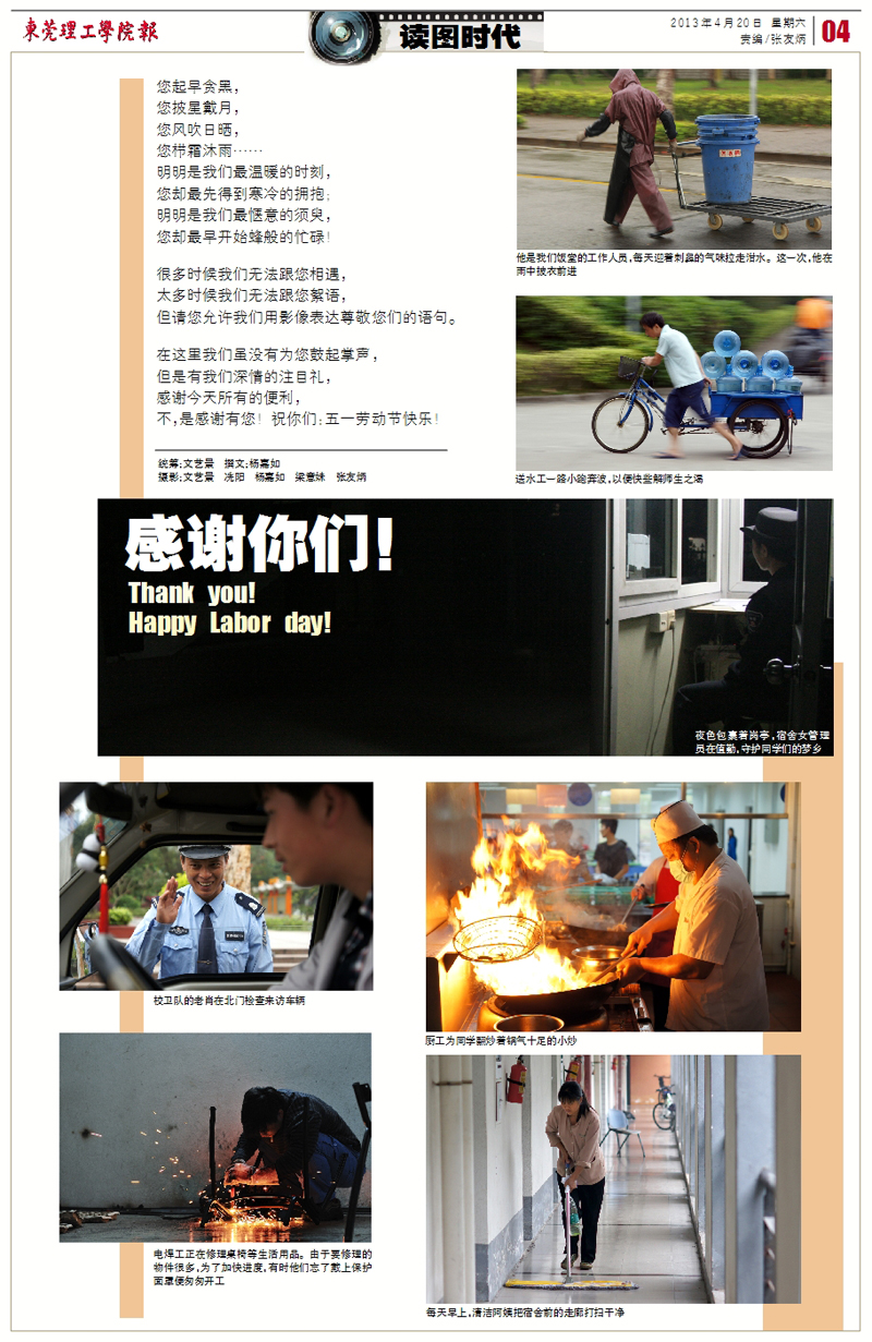 获奖作品中,组图《感谢你们》获得新闻摄影类一等奖,作者是文艺景、冼阳、杨嘉如、梁意妹、张友炳;版面第346期第1版获得版面类一等奖,作者是张友炳;通讯《你被手机“绑架”了吗?》获得通讯类三等奖,作者是方贺堂、李基烨,徐莹。