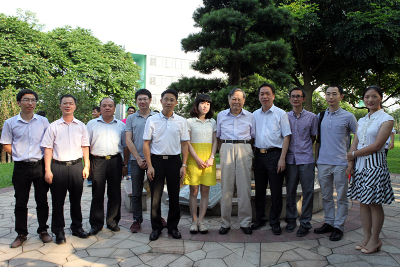 杨振宁博士亲切地与在场青年教师代表和学生代表交流,询问学生的学习情况和学校专业设置情况,并与我校领导、青年教师代表和学生代表在罗汉松前合影留念。