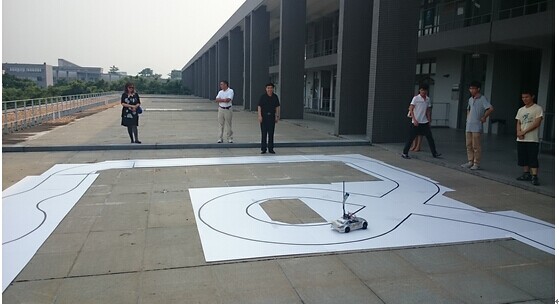 学生向客人展示研制的无人驾驶小汽车